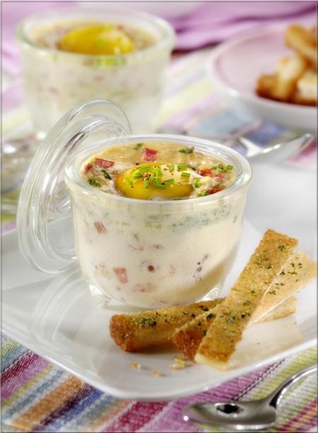 Enfourner au bain marie  pendant dix minutes. Servir avec des mouillettes de pain de mie.