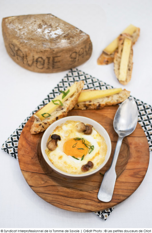 Revisitez un classique avec cet œuf cocotte, la Tomme de Savoie fondue
