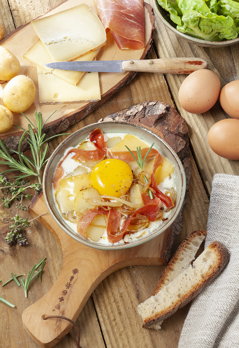 En effet, nous avons demandé à notre ami l’œuf Maitre d’école de cuisine de nous concocter une recette genre raclette, avec la précision suivante : Vous avez 25 minutes ! Qui fut dit fut fait, et c’est ainsi que dans une ambiance très chalet refuges & marmottes, notre mascotte nous a proposé la recette d’« œufs cocotte façon raclette ».