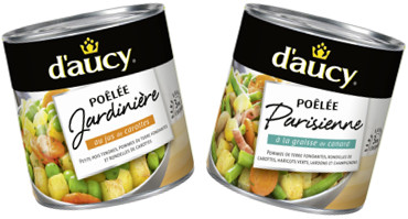 À l’écoute de ses consommateurs et toujours enquête de nouvelles idées, d’aucy a imaginé la toute première gamme de poêlées de légumes en conserve ! Une véritable innovation au rayon des légumes appertisés, avec dans un premier temps deux recettes, la Poêlée Parisienne à la graisse de canard et la Poêlée Jardinière au jus de carottes.