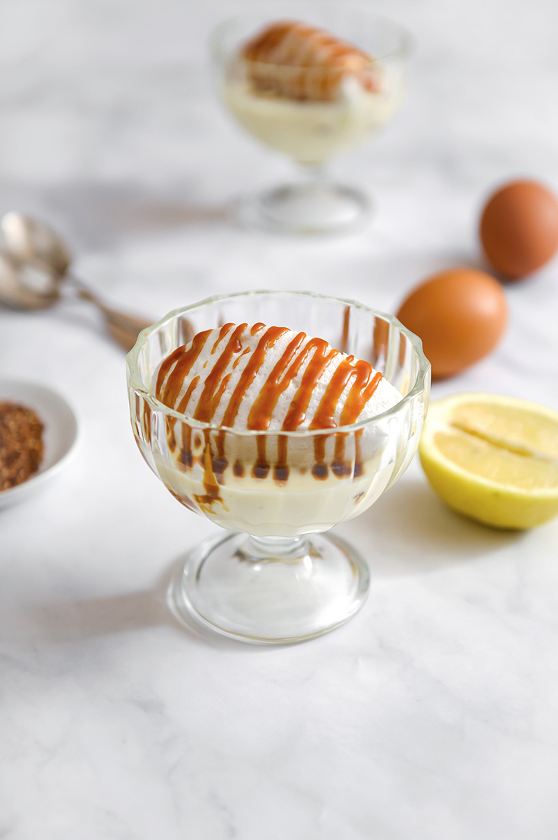 Un dessert léger et aérien, sublimé par une crème anglaise au sarrasin et un caramel citronné, pour une expérience gourmande et raffinée.