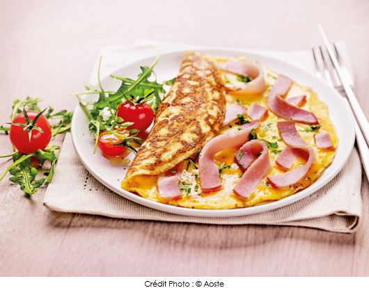 ⑥• Ajoutez les Rubans de Bacon Aoste sur l’omelette.