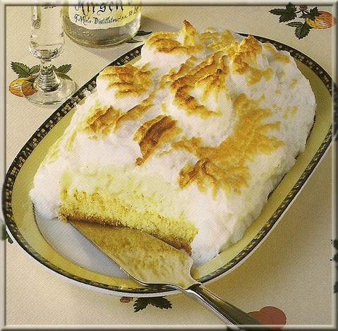 • Disposer la glace sur la génoise en dôme allongé.La recouvrir rapidement des blancs,les lisser vivement en vous aidant d'un petit carton propre.