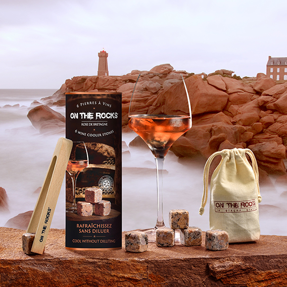 « Pour les puristes qui savourent les instants de dégustation comme un art, On The Rocks s’évertue à imaginer et créer des solutions innovantes pour sublimer les vins et alcools les plus fins. Issues du granit rose de la Clarté en Bretagne, ces pierres à vin sont exclusivement fabriquées en France : traçabilité des matières premières et considérations écologiques, comme l’empreinte carbone, sont ainsi respectées. Un choix qui reflète avant tout la cohésion des valeurs humaines autour des ressources locales, et qui s’inscrit dans le fondement de la démarche On The Rocks. » explique Vanessa Lacombe, gérante de l’entreprise On The Rocks.