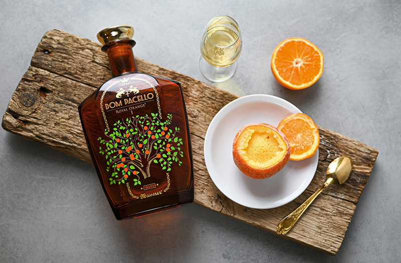 Dégustez votre orange givrée accompagnée d'un verre de Liqueur Dom Pacello Royal Orange®.