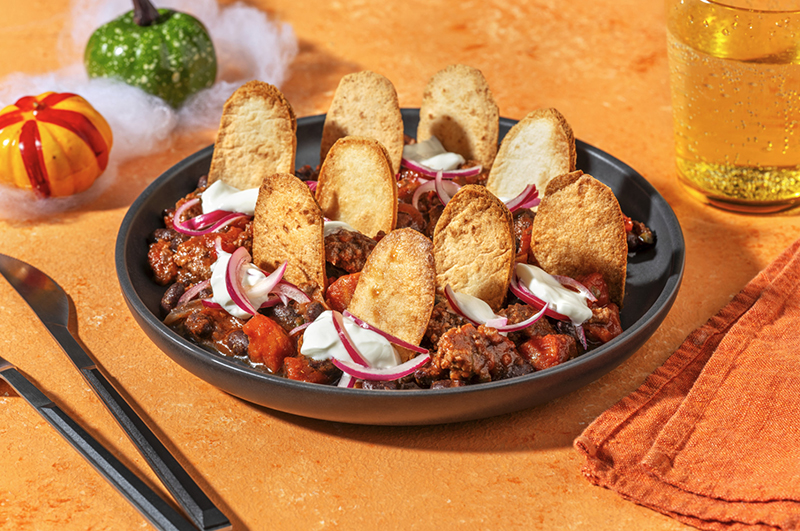 Attention les mortels ! Osez plonger vos fourchettes dans ce cimetière de bœuf épicé et haricots noirs, accompagné de délicieuses et effrayantes tombes de tortillas croustillantes. Un plat aussi amusant à préparer qu’à déguster, idéal pour impliquer les petits chefs. Saveurs et frissons garantis !