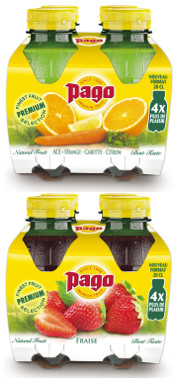 Ce concept ingénieux du "fruit à boire" est maintenant décliné en une gamme de 40 parfums aussi délicieux les uns que les autres. Outre sa grande expérience en production de jus de fruits et le choix précautionneux de ses fournisseurs, le véritable secret du succès de Pago réside dans le l'utilisation d'ingrédients 100% naturels.