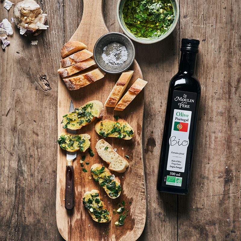 Pain portugais à l’ail, persil et huile d’olive du Portugal