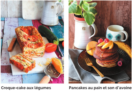 Frites de croûtons de pain et graines de courge ; tapas de pain dur et tartines aux légumes ; tartines comme une pizza ; cannellonis de pain perdu aux épinards ; roll-ups de pain perdu à la banane et crème de caramel ; pudding tatin pomme et chocolat ; bonbons de pain à l’orange et à la fleur d’oranger…