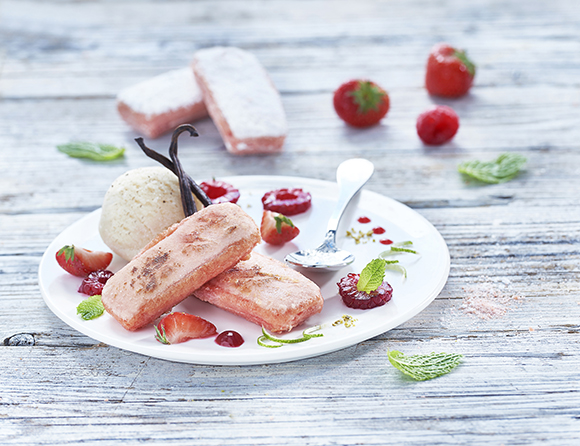 Plébiscité autant par les grands chefs que par les amateurs de cuisine créative, le Biscuit Rose se savoure aussi bien seul qu’accompagné, en ingrédient, ou en décoration de charlottes et autres gâteaux.