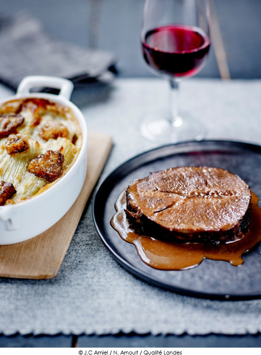 Paleron de Bœuf de Chalosse braisé au vin de Tursan, Gratin de Cardon à la moelle