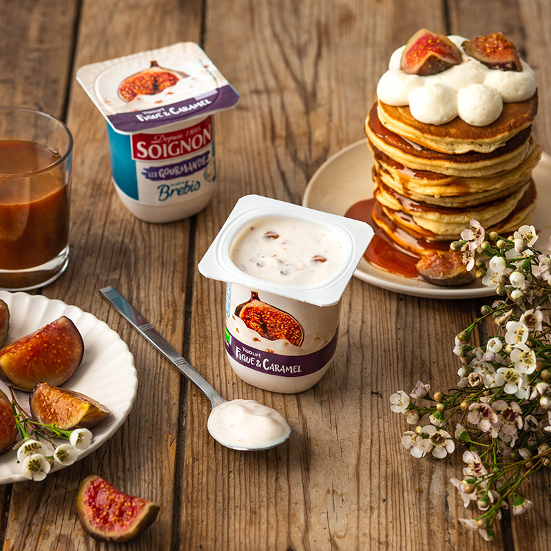 On succombe au plaisir de ce mariage raffiné. Au cœur de ce yaourt se cachent de vrais morceaux de figues. Leur goût généreux et délicat de figues rôties se mêle à la saveur sucrée du caramel. Crémeux, le lait entier de brebis sublime l’intensité du fruit cuisiné. On se laisse séduire par ce nouveau yaourt gourmand qui évoque un goûter réconfortant.