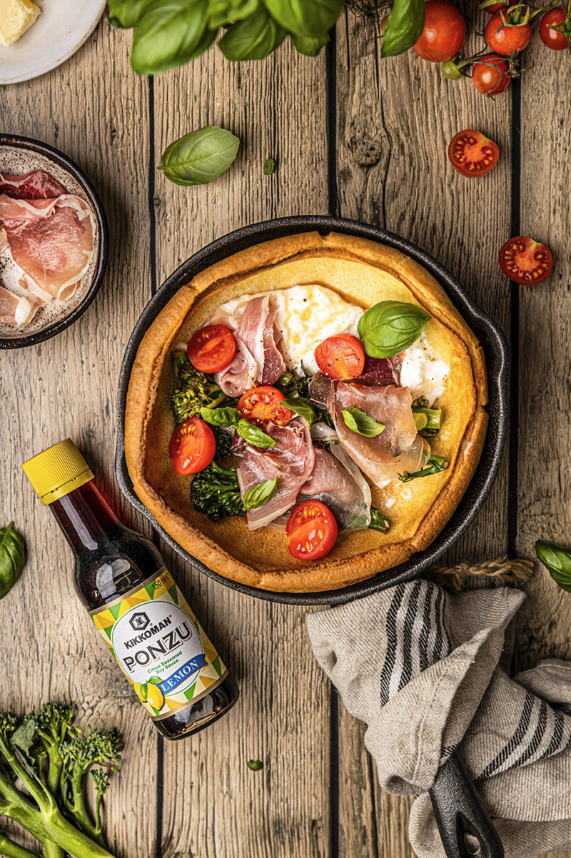 À l’inverse des Pays-Bas, ces pancakes moelleux sont tout sauf plat ! Essayez cette version salée avec de la Burrata, du jambon fumé et des brocoli frits Bimi®. Terminez par une touche de sauce soja citronnée Ponzu, et voilà un petit-déjeuner aussi copieux que cosmopolite.