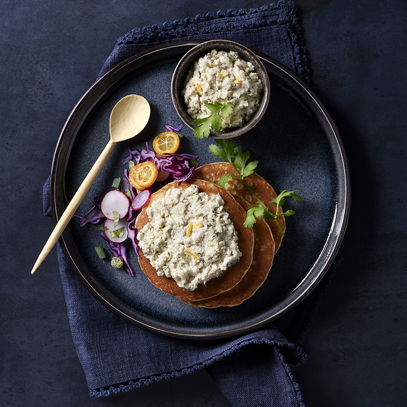 Pancakes salés au sarrasin Tartinables Merlu blanc, citron coriandre