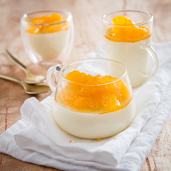 Au moment de servir, disposer quelques segments d’orange dans les verrines de panna cotta.