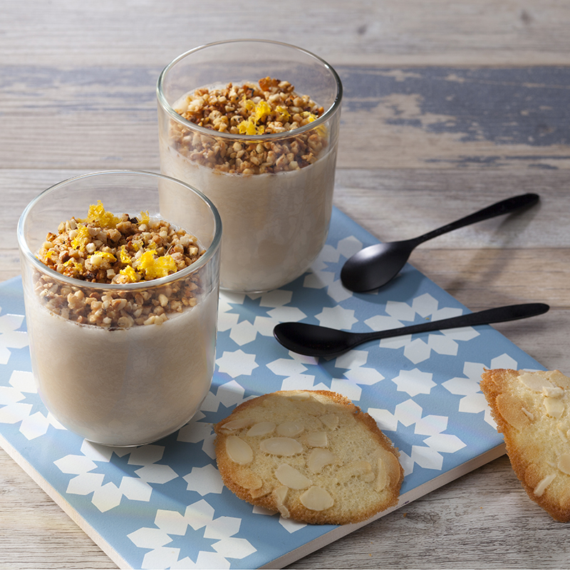 Panna cotta au thé Earl Grey et tuiles aux amandes