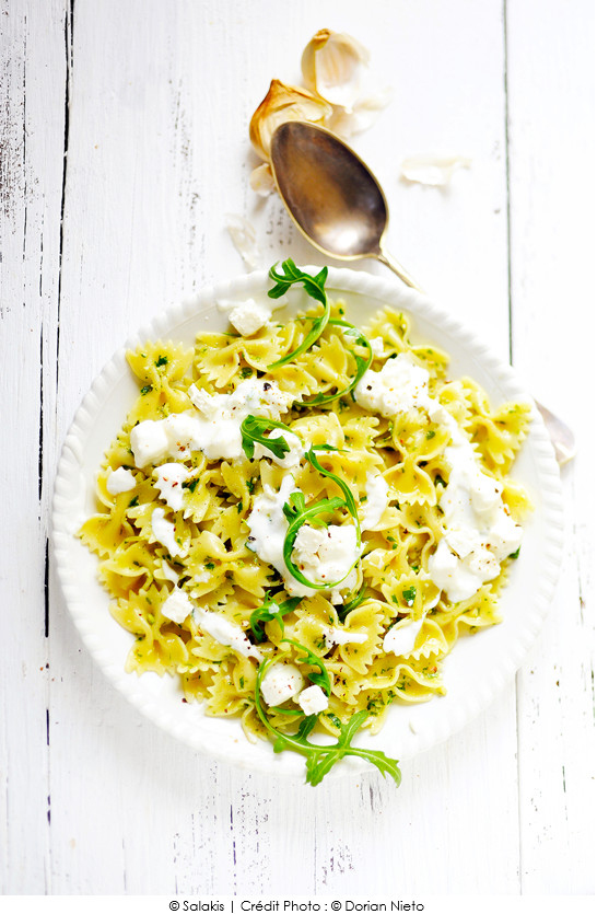 Papillons au pesto de roquette et Salakis nature