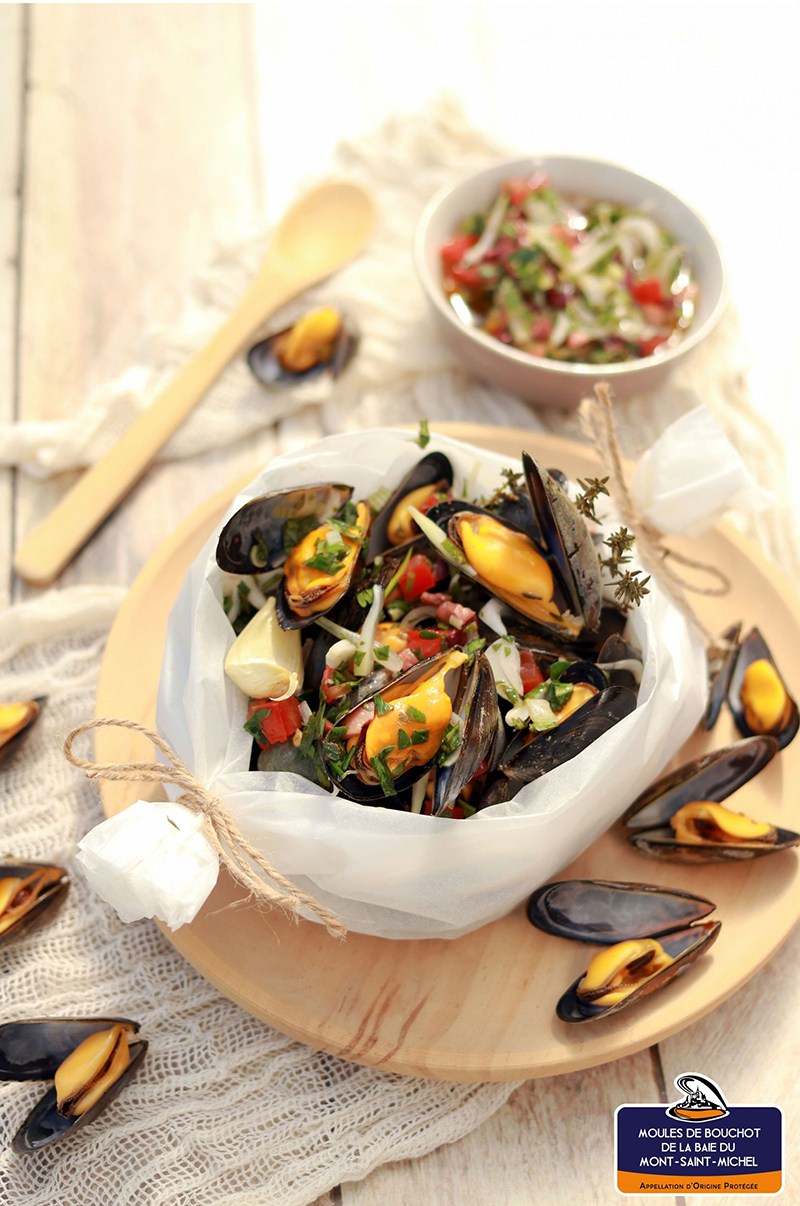 Papillote de Moules de bouchot de la Baie du Mont-Saint-Michel et sa sauce vierge