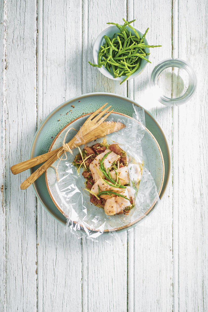 Refermer la papillote et cuire 8 minutes à la plancha ou au four.