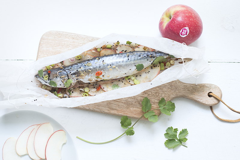 Papillotes de maquereaux à la pomme Pink Lady® et au gingembre