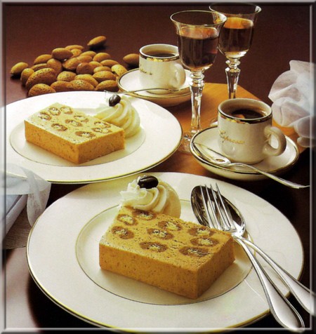 3.Tremper rapidement les biscuits dans le café.Remplir un moule à cake en intercalant crème et biscuits.Faire congeler 4 heures.