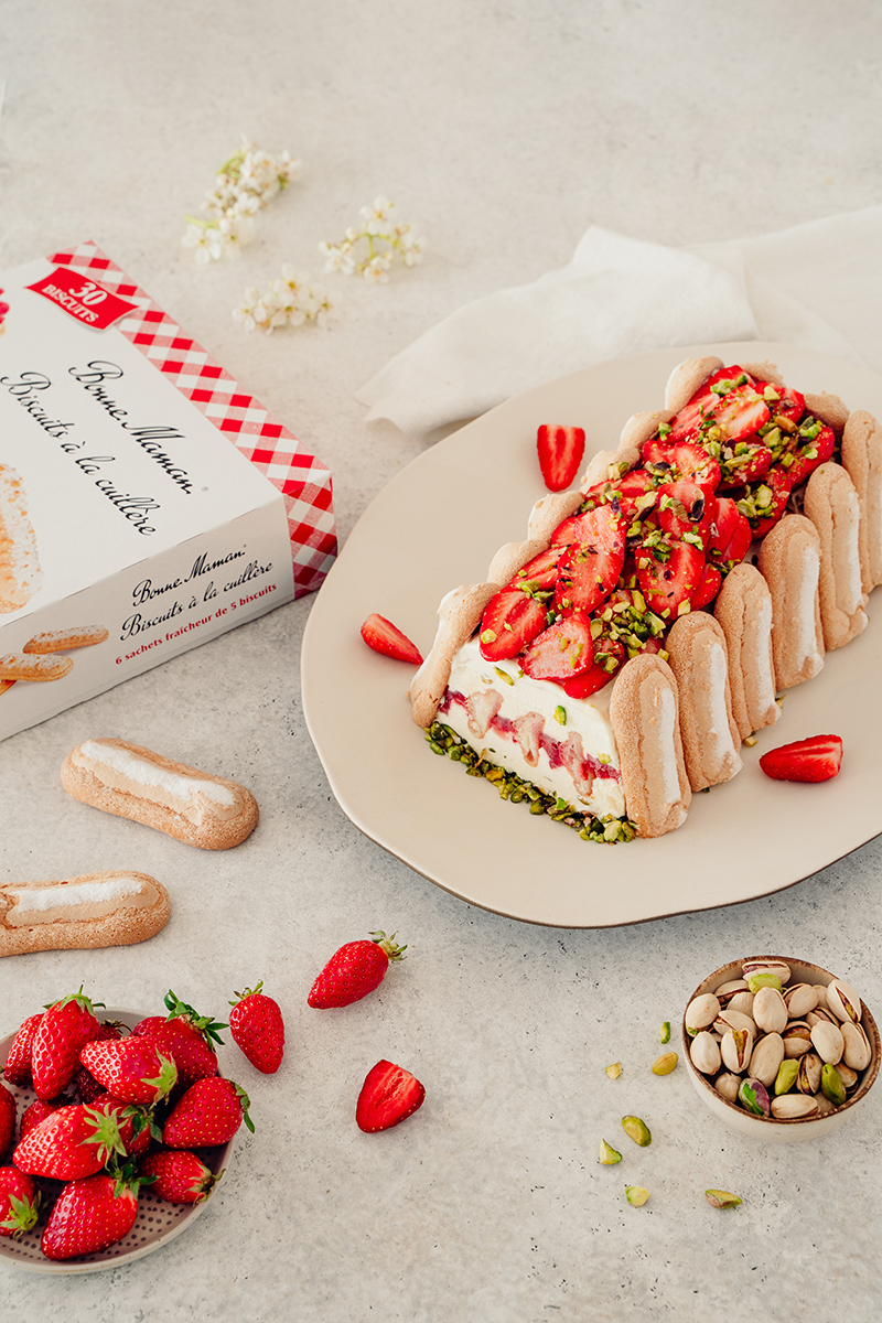 Pour profiter de la période estivale tout en fraîcheur, Bonne Maman® propose une recette gourmande fruitée et glacée. Réalisé à base de biscuits à la cuillère Bonne Maman®, le Parfait glacé aux fraises et à la pistache est un plaisir à déguster au soleil !