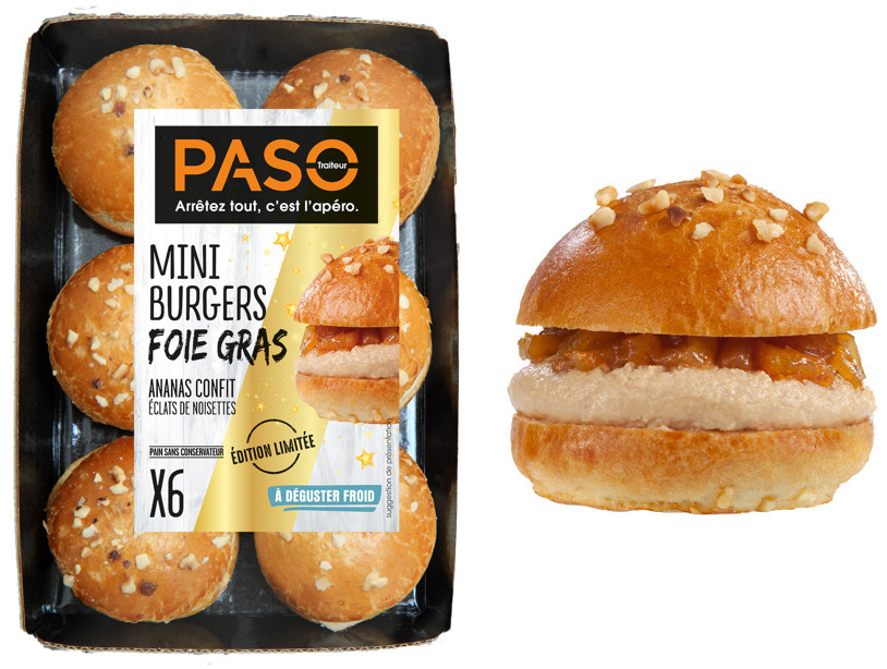 PASO Traiteur dévoile trois références apéritives destinées aux fêtes de fin d’année: les Mini Burgers foie gras-ananas, les Mini Black Burgers et le traditionnel Préfou au saumon. Ces délicieuses recettes conviviales et festives seront disponibles tout au long du mois de décembre en GMS au rayon libre-service.