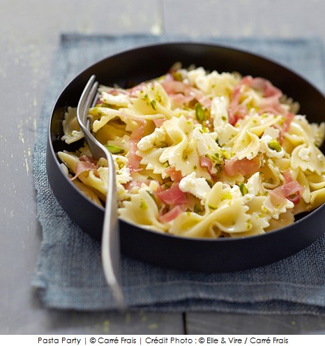 Mélangez les Carré Frais, les lamelles de jambon et les pistaches puis utilisez cette préparation pour farcir des cannellonis, des ravioles…