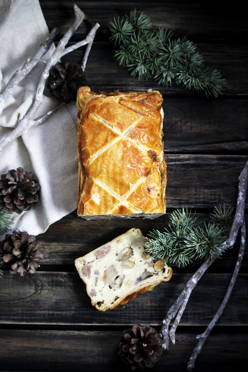 Pâté en croûte aux champignons, fruits secs & ricotta
