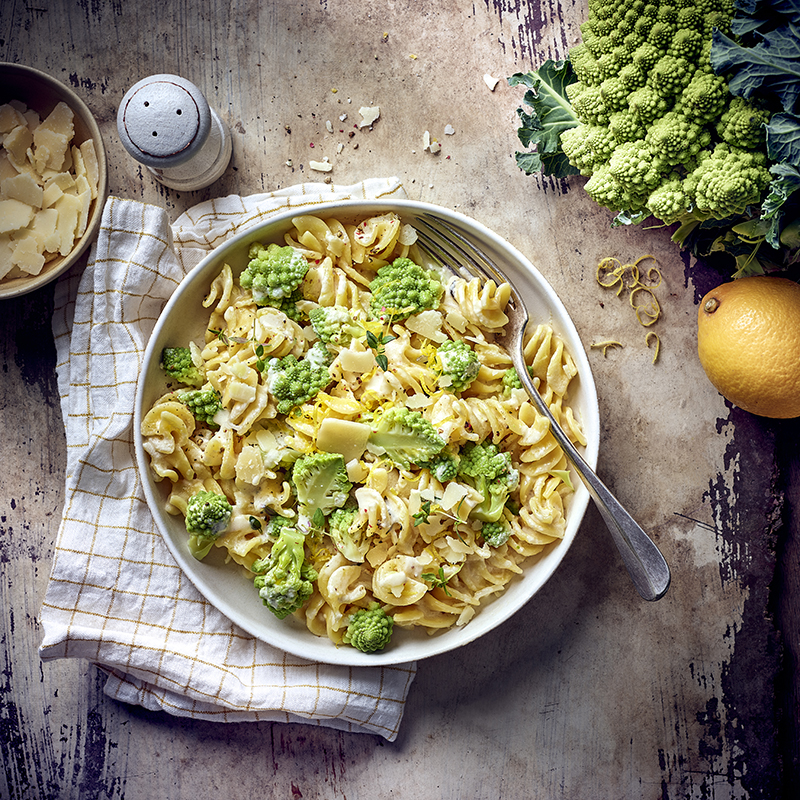 Astuces : servez les pâtes au chou romanesco saupoudrées de zestes de citron et de feuilles de thym.