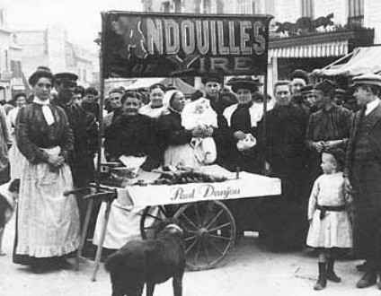 Le fabricant, non content de régaler d’autres palais que ceux des virois, décide de se rendre à la Capitale, grâce à la toute nouvelle ligne ferroviaire Vire-Paris, pour vendre ses andouilles sur les marchés. Il participe notamment à la Foire de Paris en 1900, aux côtés de l’attraction de l’année : la Tour Eiffel ! Les parisiens découvrent alors cette spécialité du terroir Normand, que l’on retrouve désormais à la carte des meilleurs bistrots.