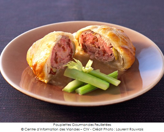 Servir les feuilletés de veau accompagnés de légumes verts et de la sauce.