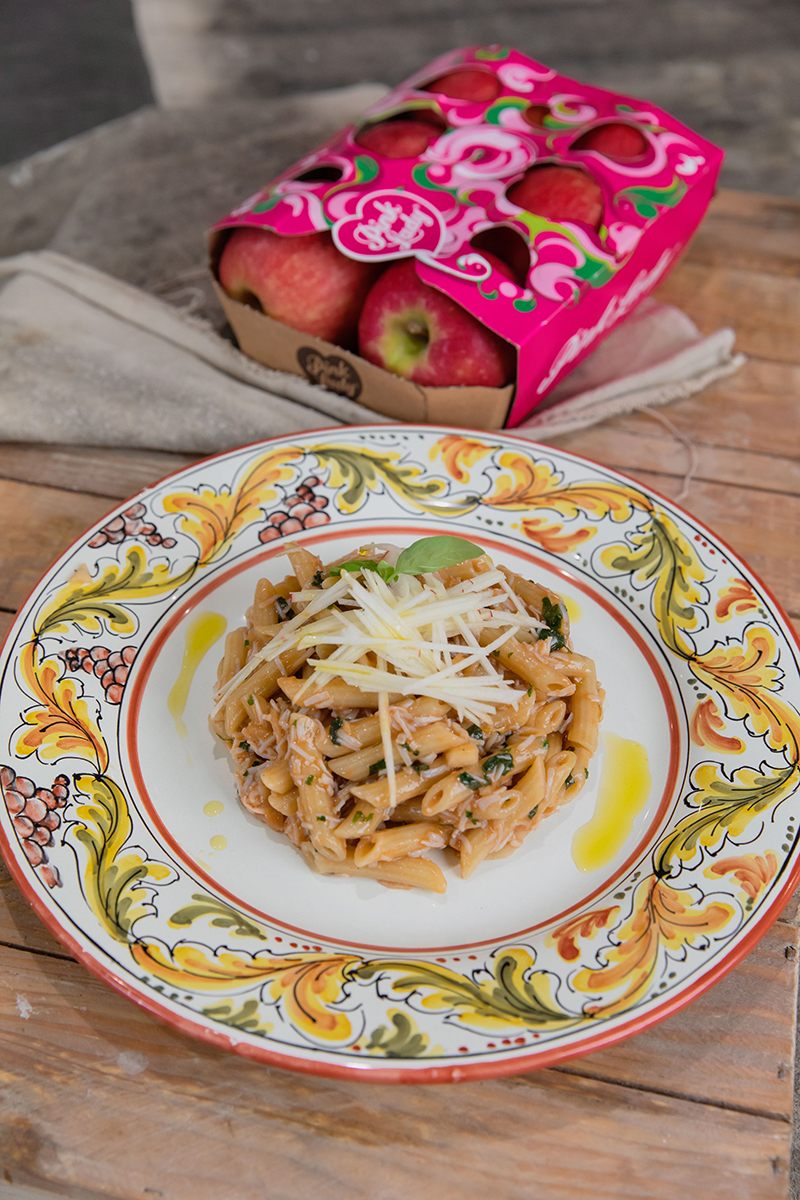 Servez vos pâtes en ajoutant une julienne de pommes Pink Lady® très finement coupées.