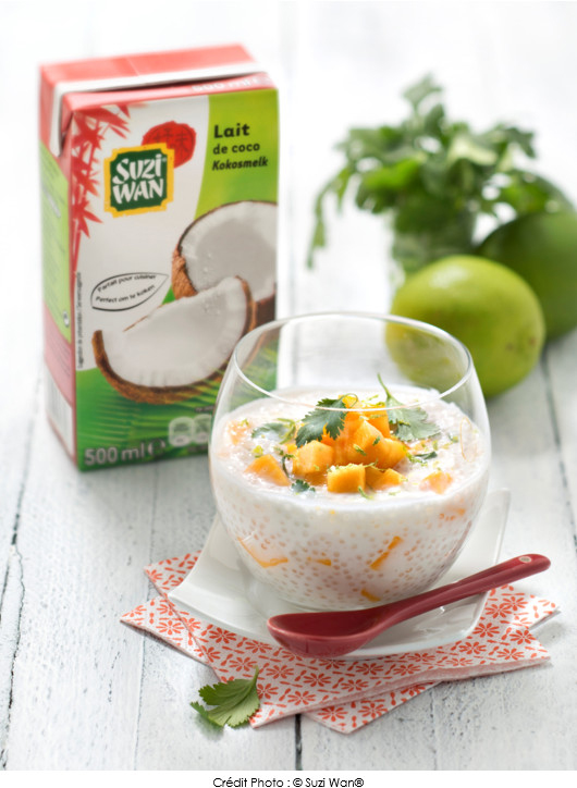 Perles du Japon au lait de coco, mangue, citron vert et coriandre
