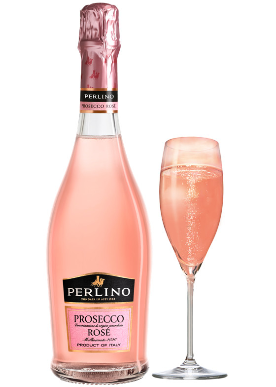 MILLÉSIMÉ 2020, PERLINO ROSÉ EST UN PROSECCO EXTRA DRY. IL RÉVÈLE UNE BELLE ROBE ROSE PÂLE ET UN BOUQUET DÉLICAT AUX NOTES ACIDULÉES DE FRUITS ROUGES, AVEC UNE BOUCHE FRAÎCHE ET RONDE.