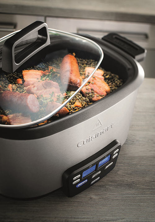 Pour la plupart des plats, la marche à suivre est très simple. Que l’on veuille cuisiner pour 2 ou bien 10 personnes, il suffit de remplir la cocotte amovible de 5,7 litres avec les ingrédients, régler le type de cuisson et la température, puis la Cuicotte fait le reste. Plus besoin de passer des heures en cuisine, il suffit de laisser agir la magie Cuicotte de Cuisinart !