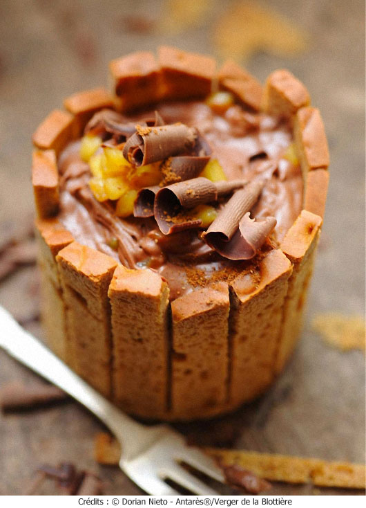 Petite charlotte aux pommes Antares, pain d’épices et chocolat