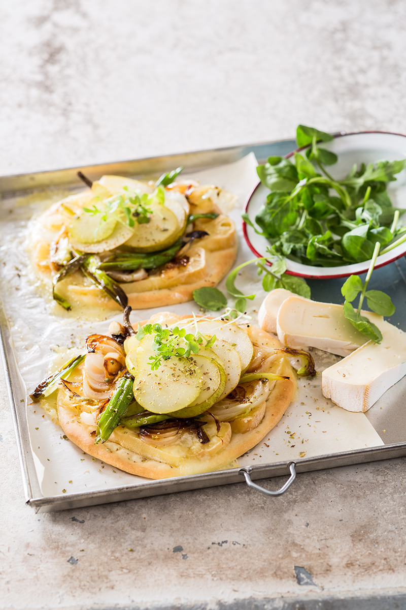 Envie d'épater la galerie ? Découvrez cette délicieuse recette de pizza au Reblochon, agrémentée d'oignons nouveaux et de poires citronnées. Une recette simple & gourmande à tester assurément !