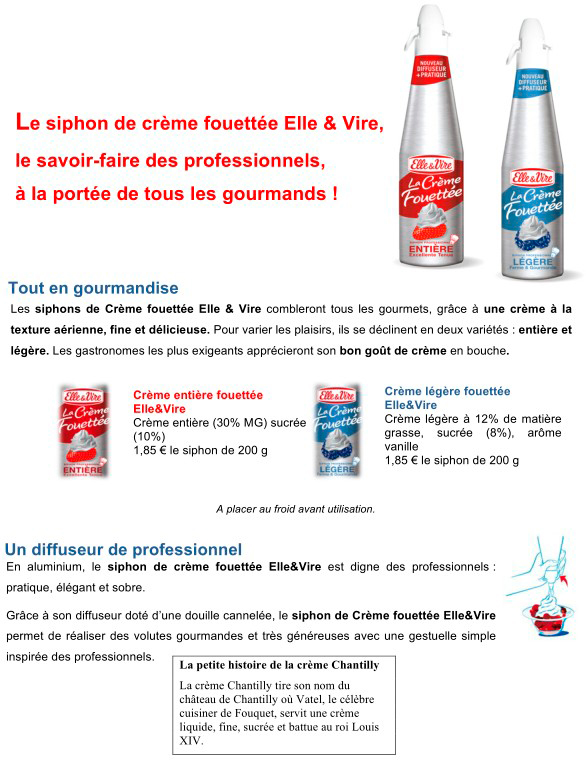 ► 1 siphon de Crème légère fouettée « Elle & Vire »