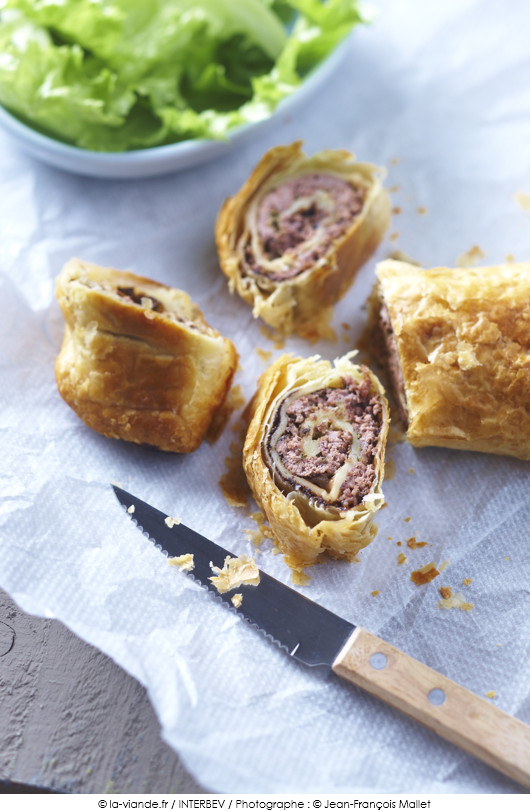 Petits feuilletés roulés au steak haché