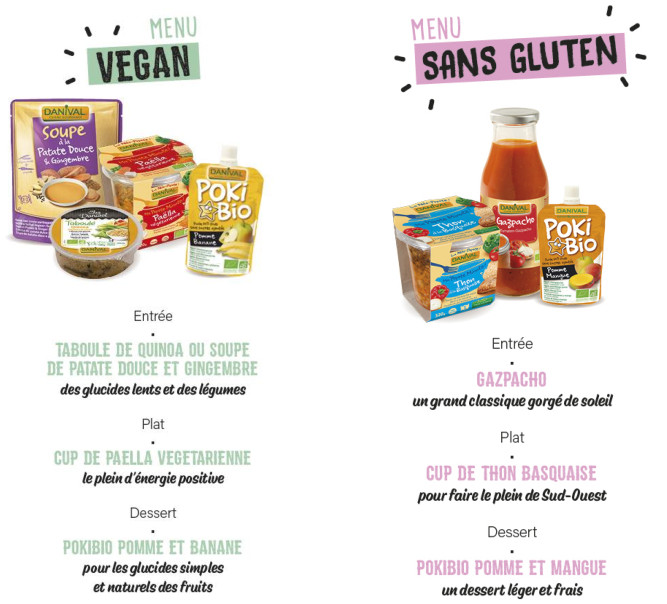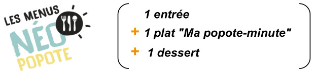 Les suggestions de menus néo-popote Danival (une entrée + un plat "Ma Popote-minute" + un dessert)