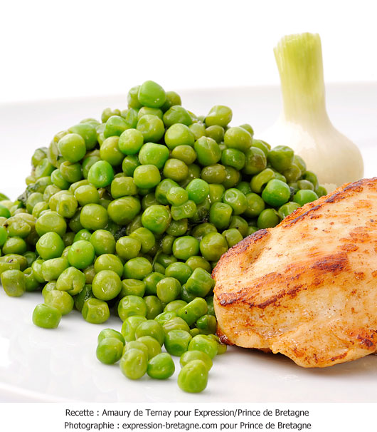 Vos petits pois à la française accompagneront parfaitement une viande blanche, veau ou volaille.