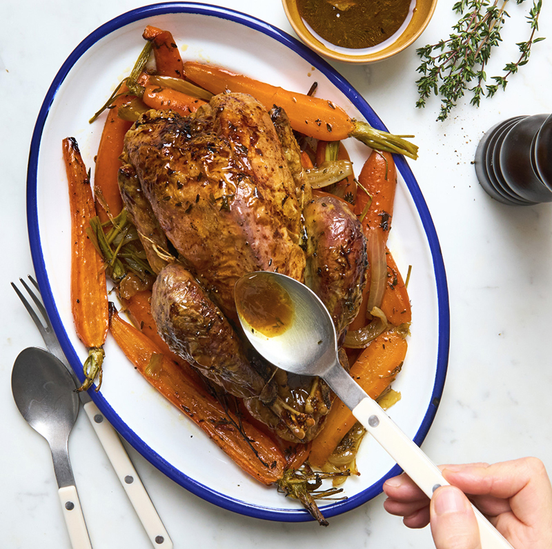 Pintade Française rôtie & carottes au miel