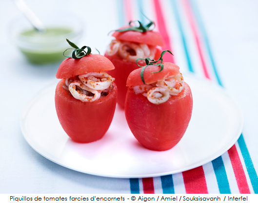 Piquillos de tomates farcies d’encornets