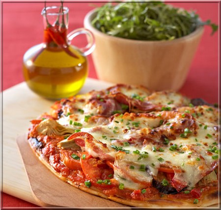 Pizza à la Pancetta et Légumes Confits à la Mozzarella