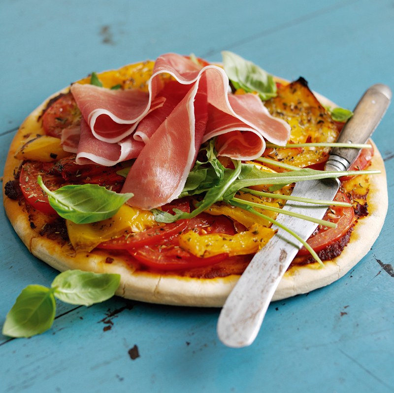 Cette pizza au jambon de Parme est follement appétissante avec sa garniture foisonnante, elle coche vraiment toutes les cases de la gourmandise.