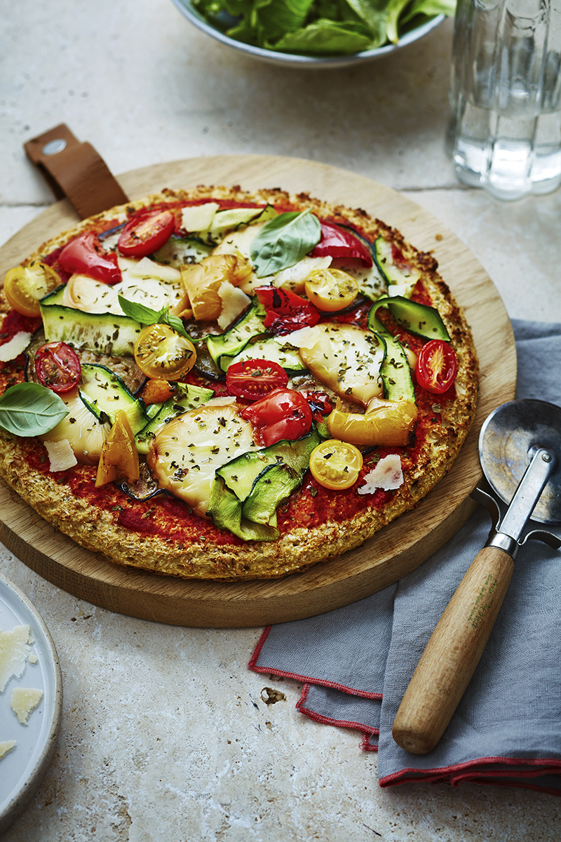 Pizza aux légumes grillés et scamorza (pâte au chou-fleur)
