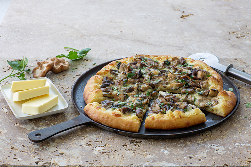 Pizza forestière aux shiitakés cuits au beurre Charentes-Poitou AOP