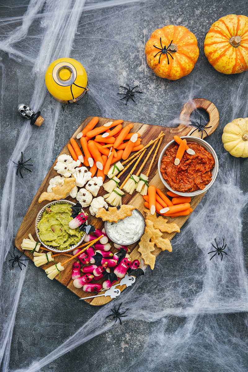 Cachée entre quelques toiles d’araignées, se trouve une planche apéritive aux recettes gourmandes, colorées et terrifiantes, pour se régaler de façon amusante !