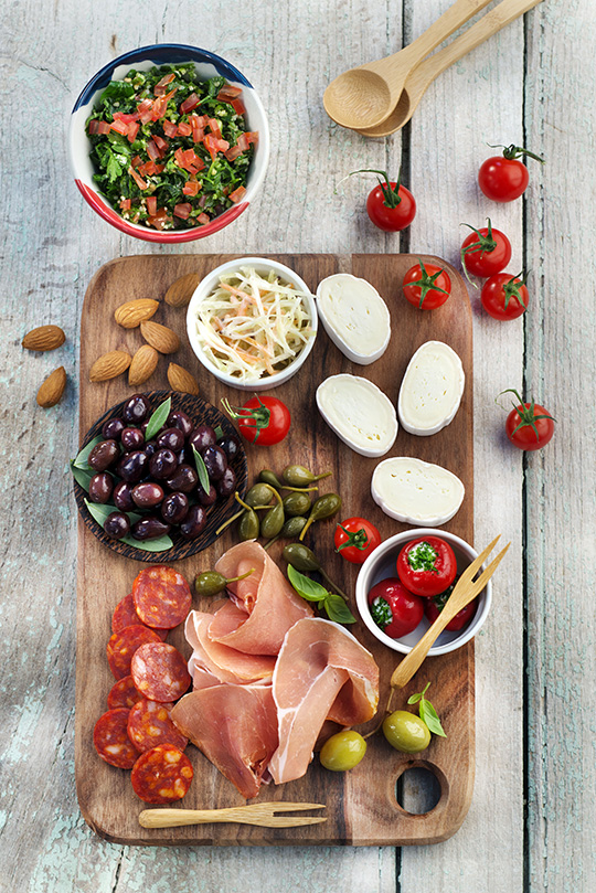 Disposer sur une planche tous les éléments. Il est grand temps de déguster.